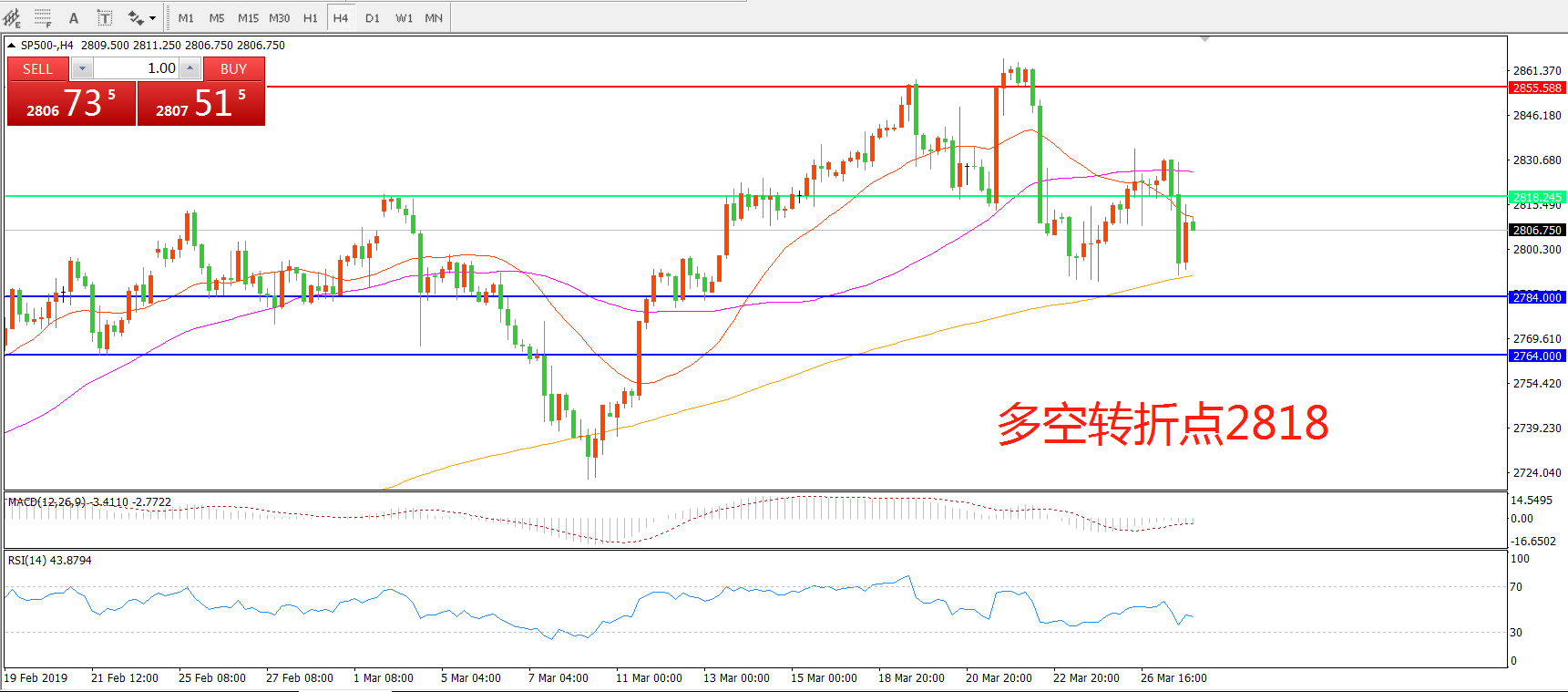 交易策略:在2818之下看跌,目标2784 2764