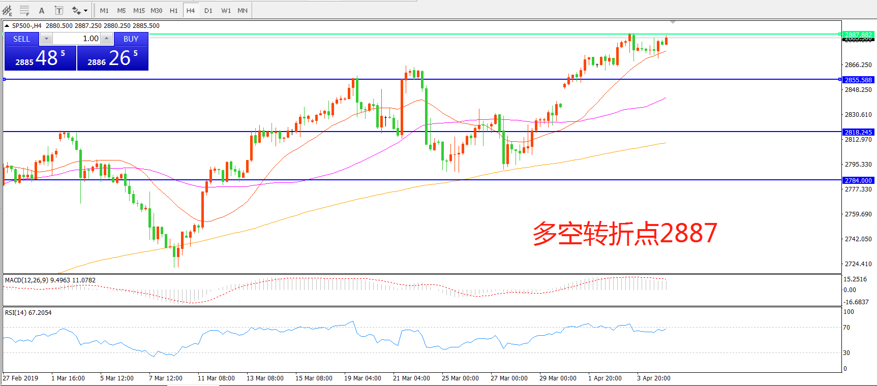 多空转折点:2887.00