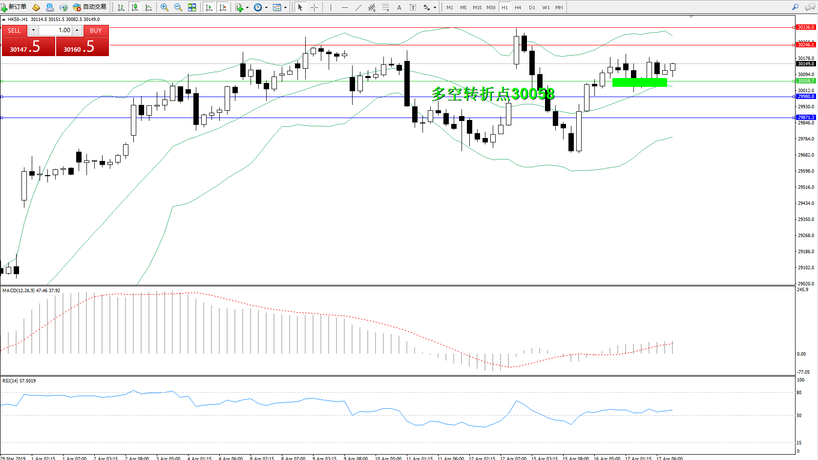 恒指HK50 ——1小时K线图显示: