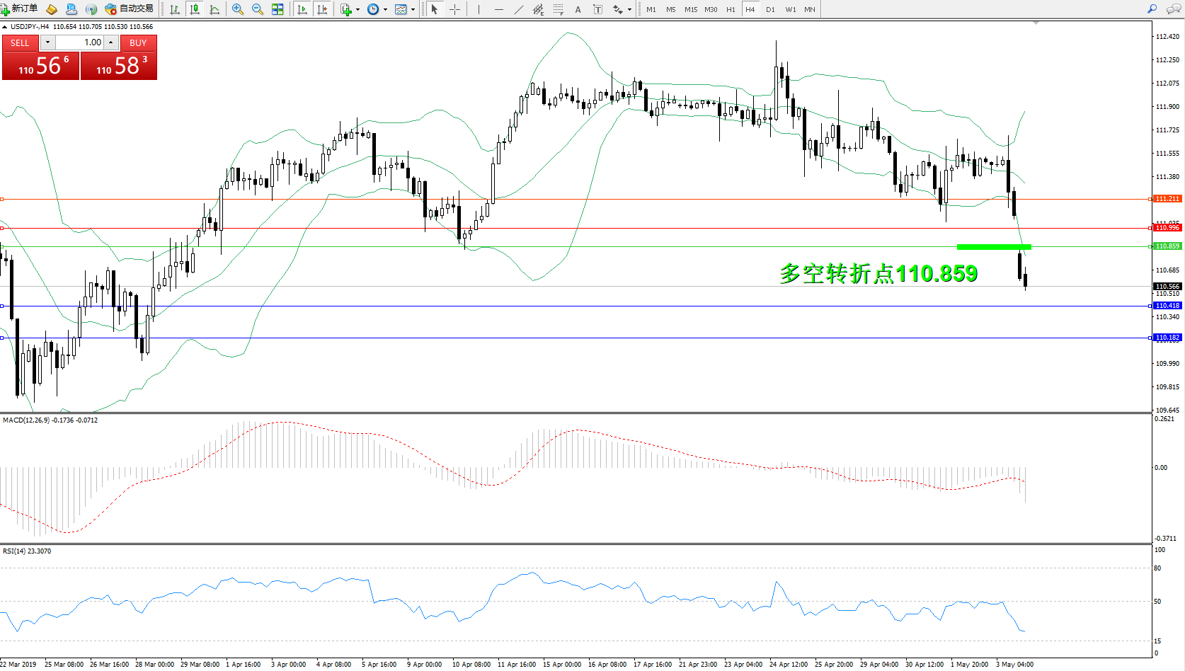 交易策略:110.859下方看跌,目标110.418、110.182