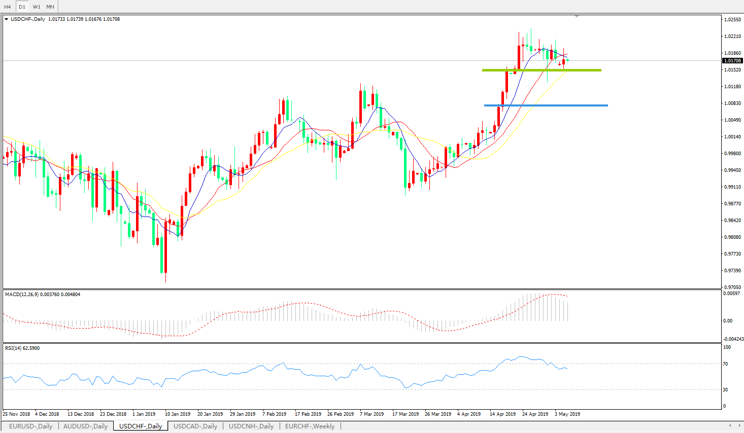 美元兑瑞郎USDCHF 日线图: