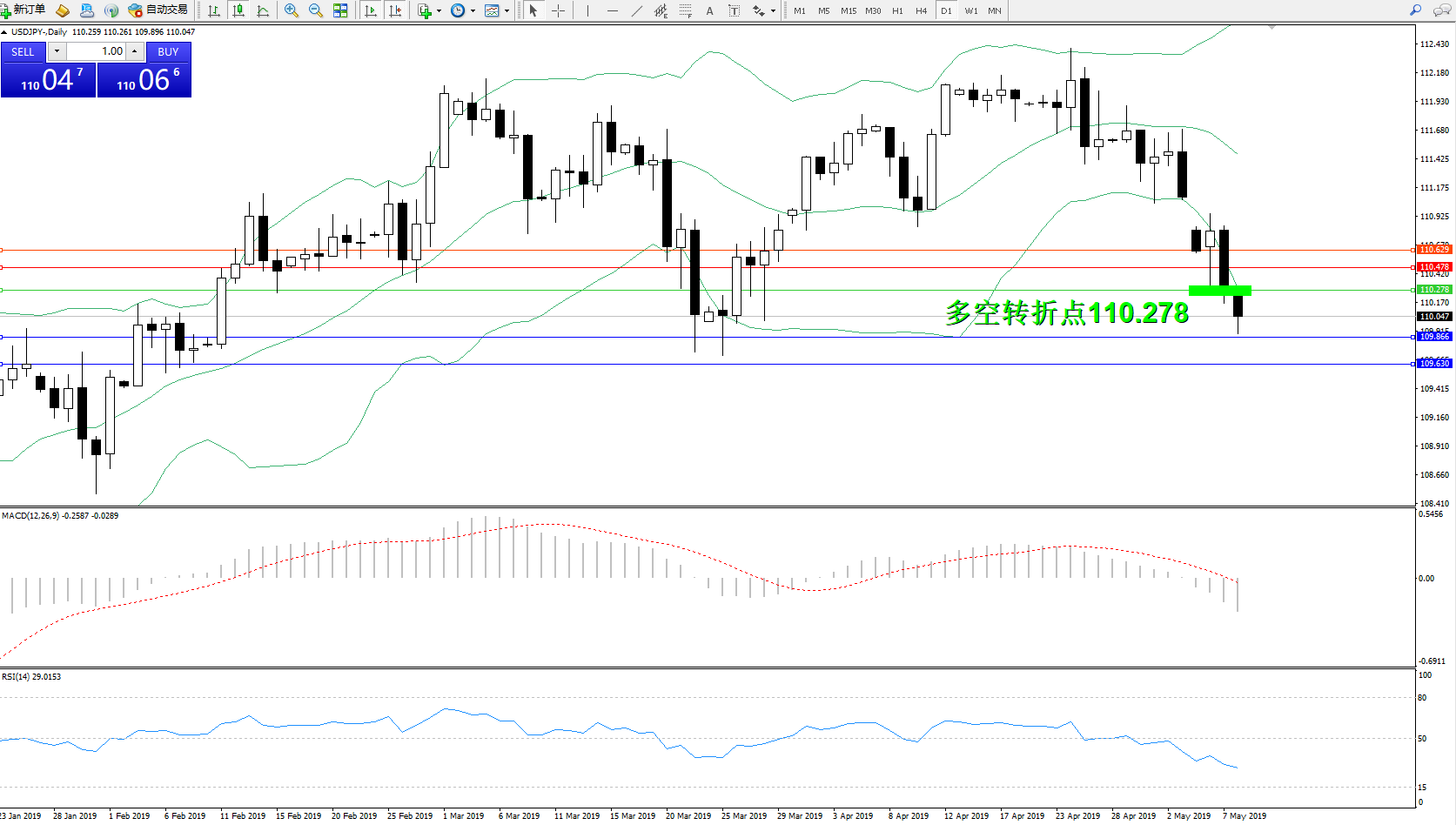 交易策略:110.278下方看跌,目标109.866、109.630
