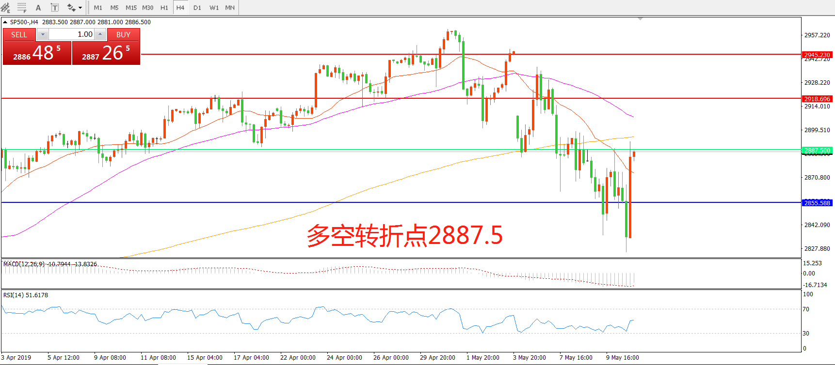 多空转折点:2887.5.