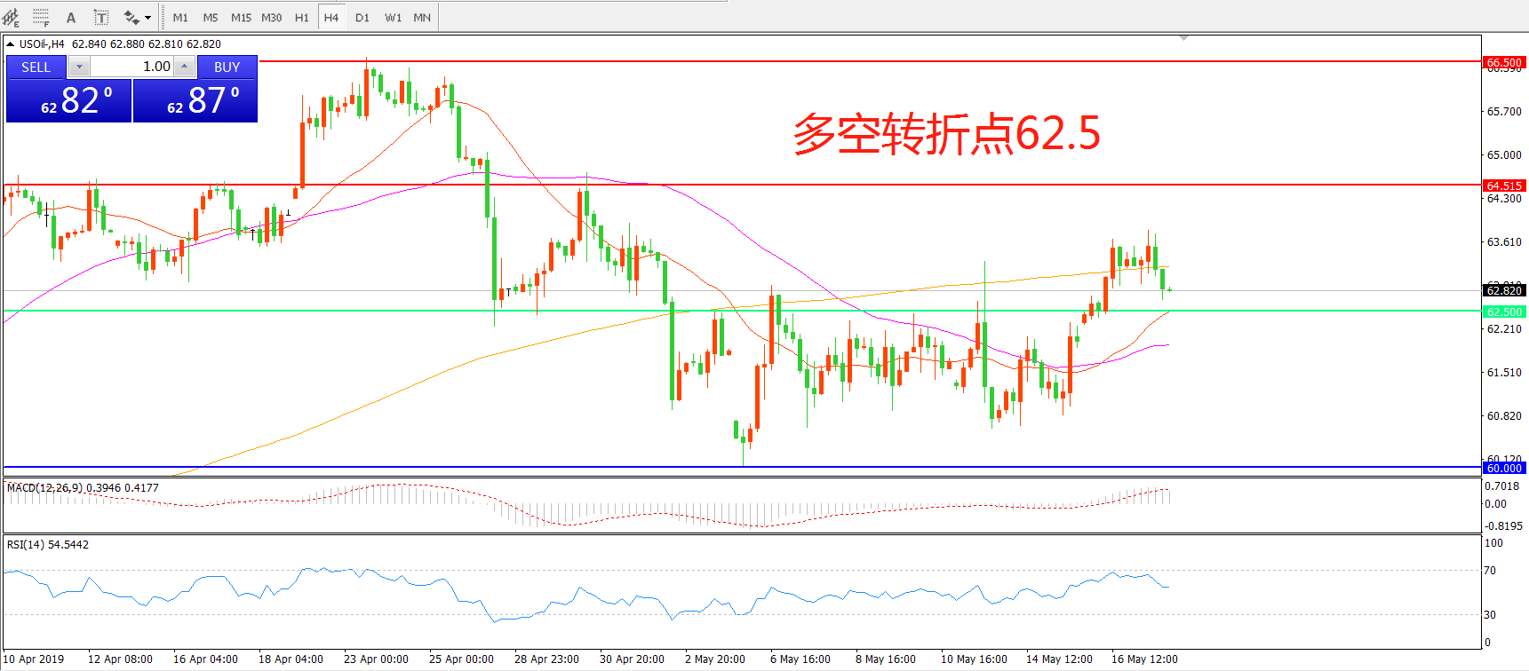 多空转折点:62.50