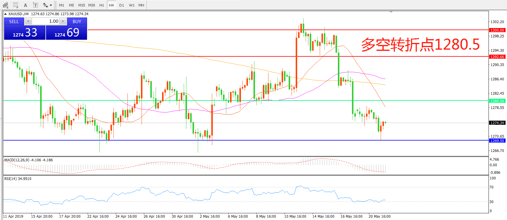 交易策略:在1280.50之下看跌,目标1269.50   1250.00
