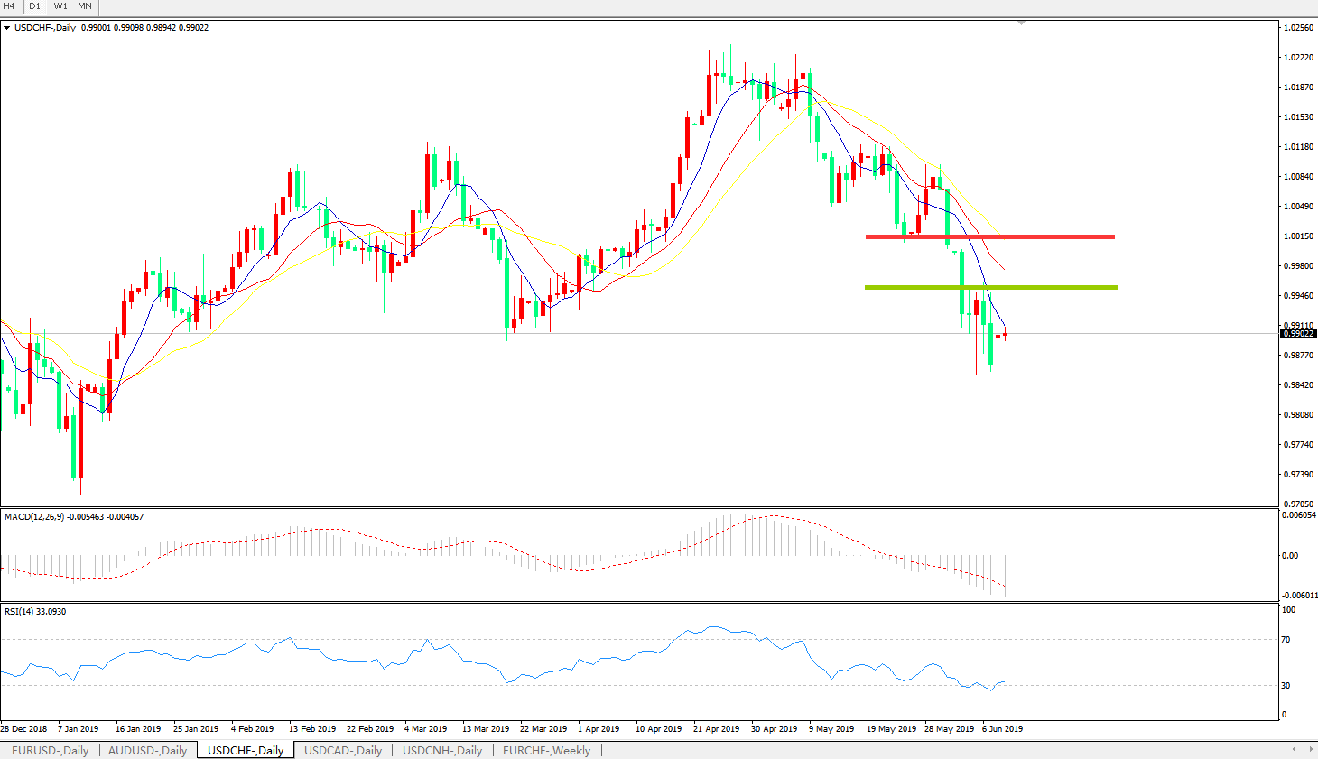 美元兑瑞郎USDCHF 日线图: