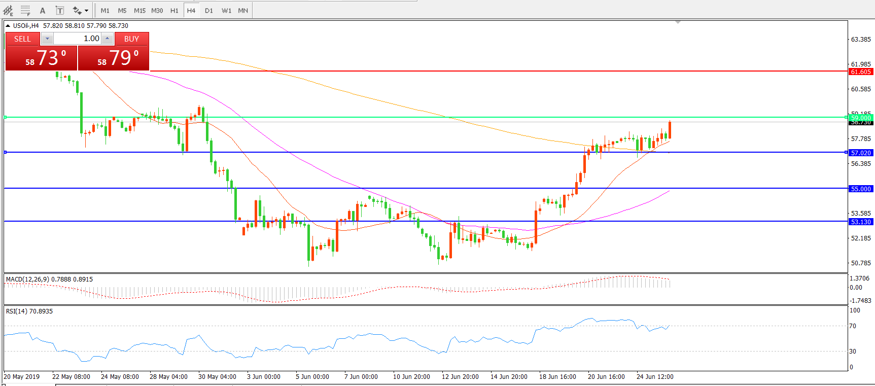 交易策略:在59.00之上看涨,目标61.00 64.00