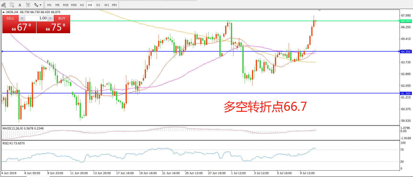 交易策略:在66.70之上看涨,目标70.00 73.00