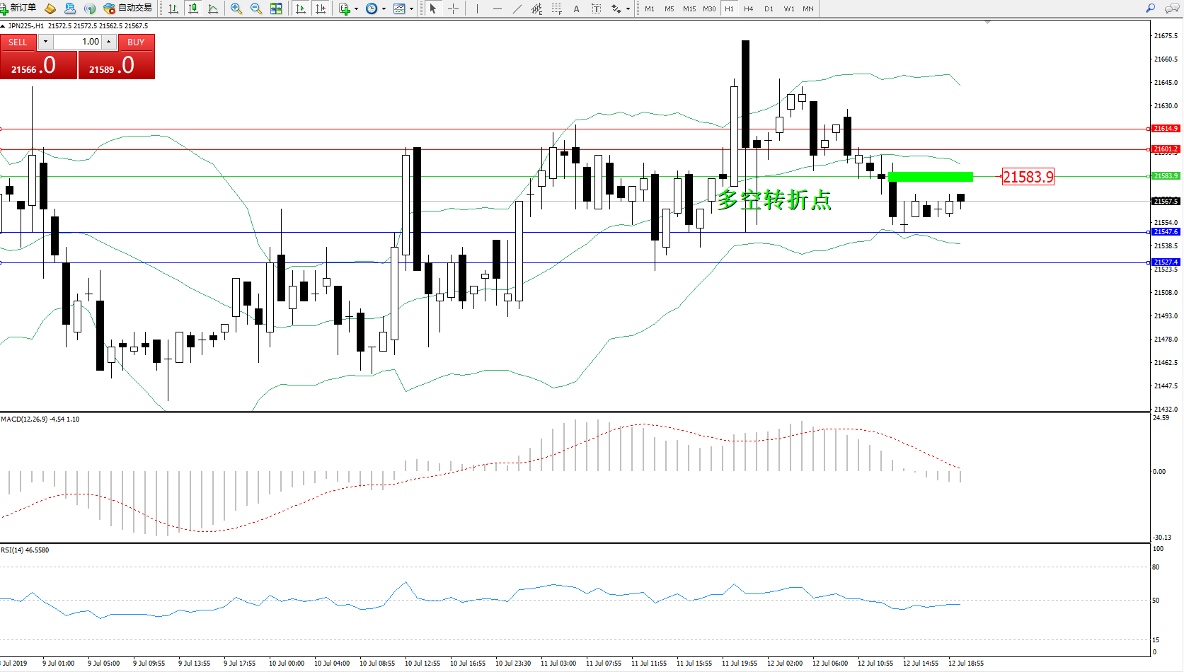 交易策略:21583下方看跌,目标21547、21527