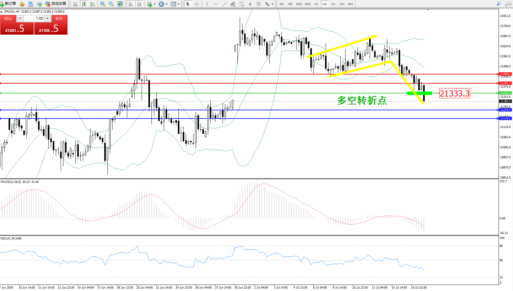 交易策略:21333下方看跌,目标21229、21176