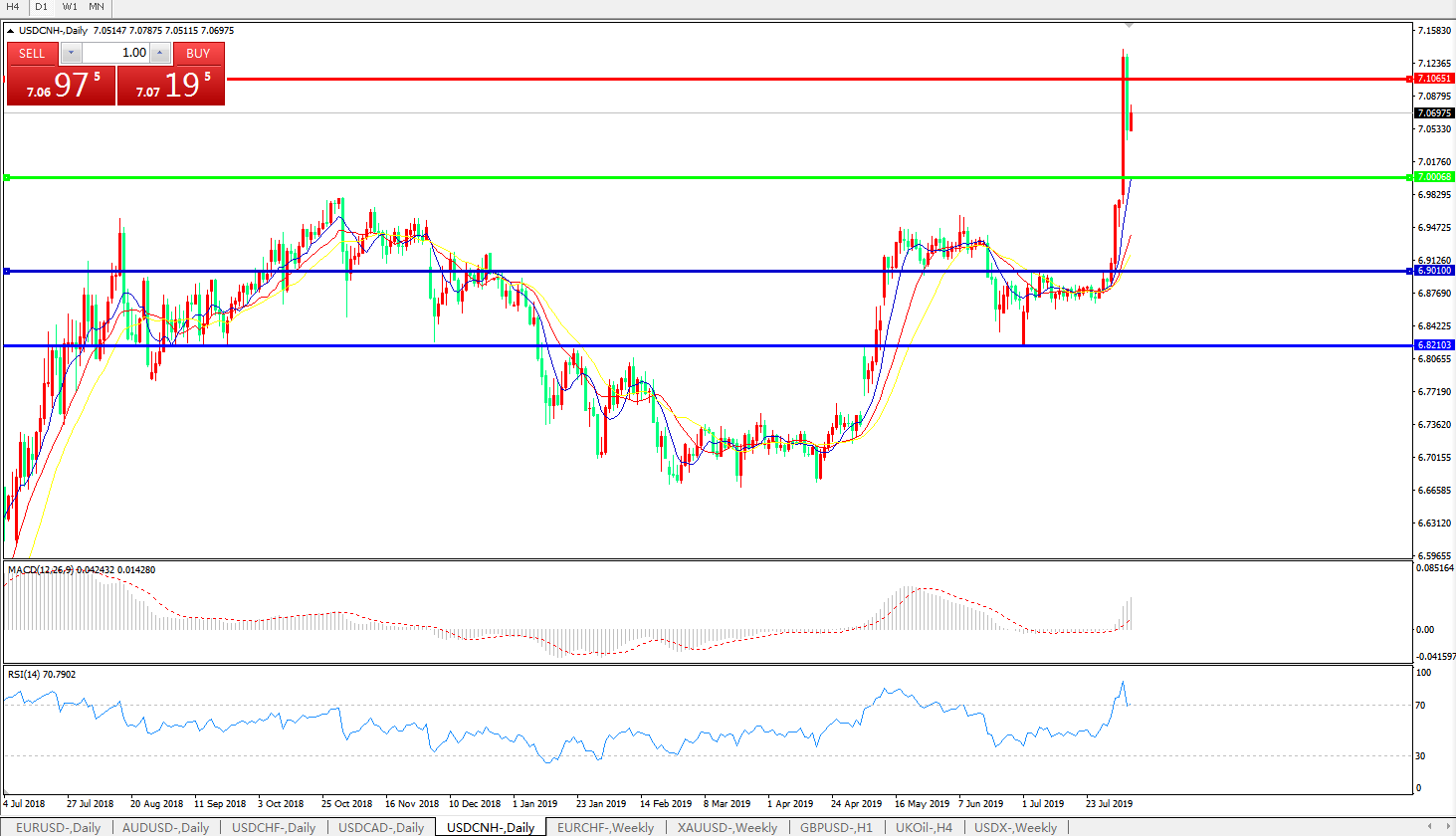备选策略: 在7.0000之下,看跌,目标价位为6.9010,然后为6.8210。