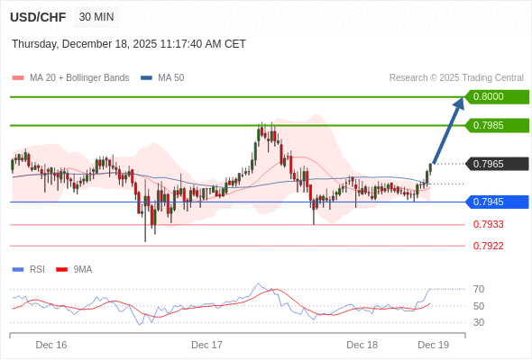 在 0.7945 之上,看涨,目标价位为 0.7985 ,然后为 0.8000 。