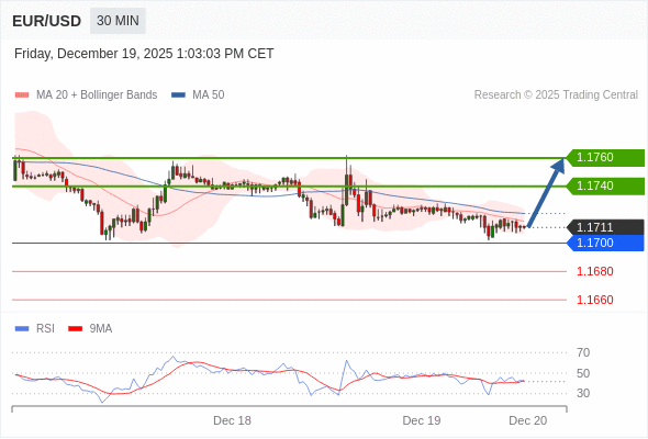 在 1.1700 之上,看涨,目标价位为 1.1740 ,然后为 1.1760 。