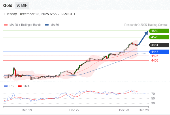 在 4448 之上,看涨,目标价位为 4520 ,然后为 4550 。