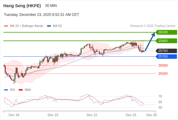 在 25700 之上,看涨,目标价位为 25960 ,然后为 26100 。