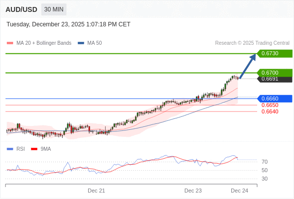 在 0.6655 之上,看涨,目标价位为 0.6700 ,然后为 0.6730 。