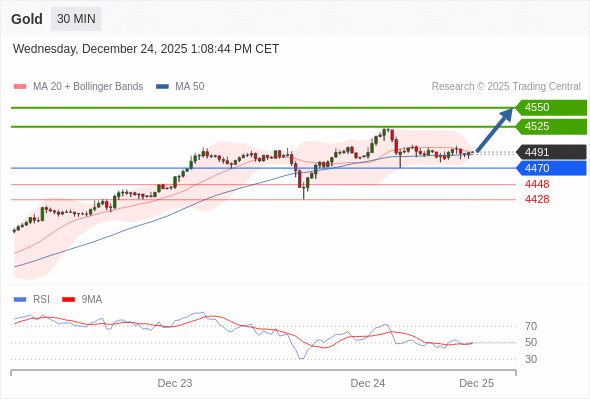 在 4470 之上,看涨,目标价位为 4505 ,然后为 4550 。