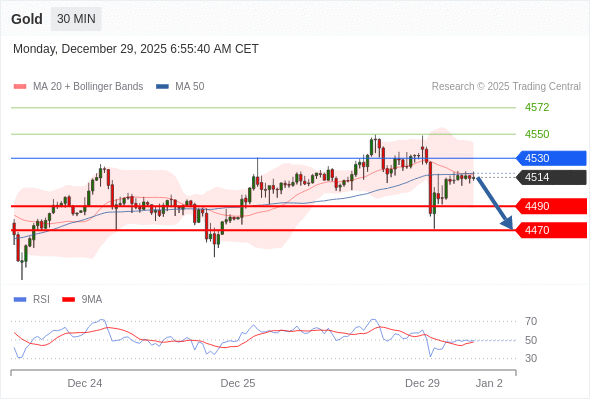 在 4530 之下,看跌,目标价位为 4490 ,然后为 4470 。