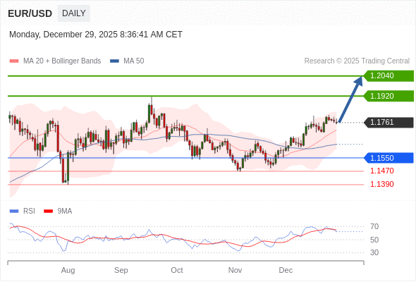 在 1.1550 之上,看涨,目标价位为 1.1920 ,然后为 1.2040 。