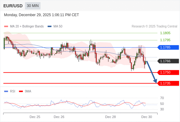 在 1.1785 之下,看跌,目标价位为 1.1750 ,然后为 1.1735 。