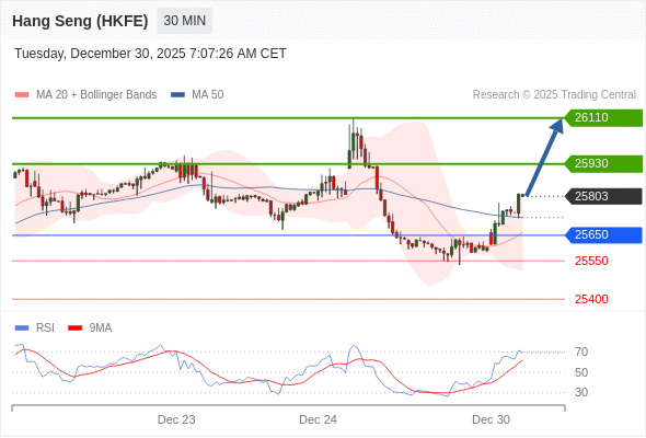 在 25650 之上,看涨,目标价位为 25930 ,然后为 26110 。