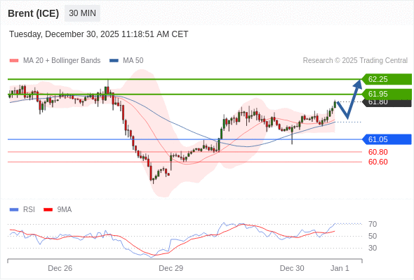 在 61.05 之上,看涨,目标价位为 61.95 ,然后为 62.25 。