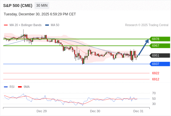 在 6937 之上,看涨,目标价位为 6967 ,然后为 6978 。