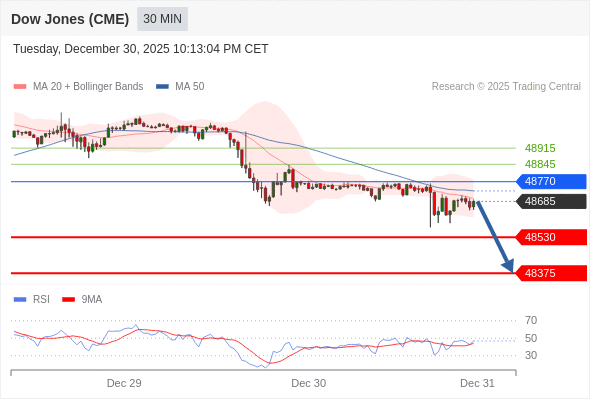 在 48770 之下,看跌,目标价位为 48530 ,然后为 48375 。
