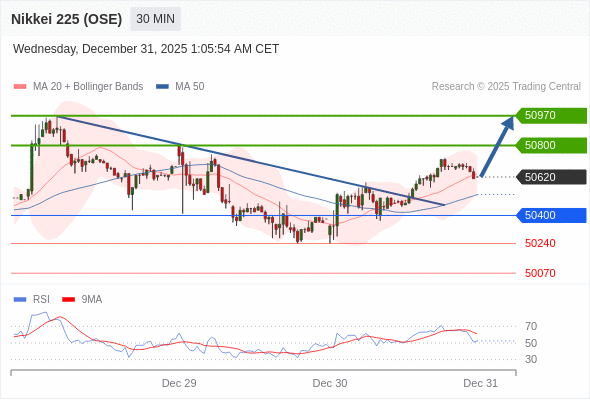 在 50400 之上,看涨,目标价位为 50800 ,然后为 50970 。