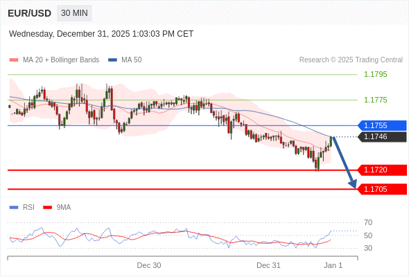 交易策略: 在 1.1755 之下,看跌,目标价位为 1.1720 ,然后为 1.1705 。