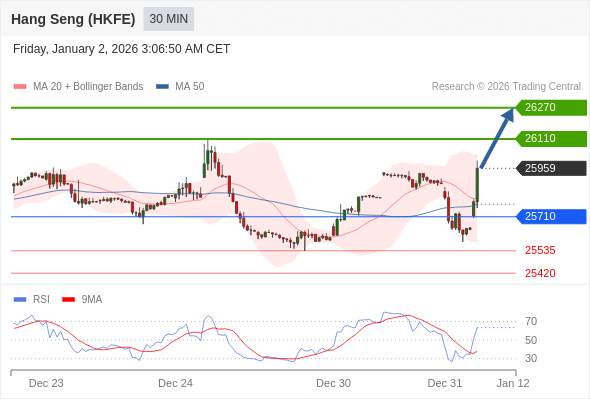 交易策略: 在 25710 之上,看涨,目标价位为 26110 ,然后为 26270 。