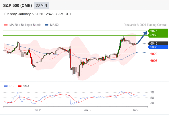 在 6938 之上,看涨,目标价位为 6965 ,然后为 6975 。