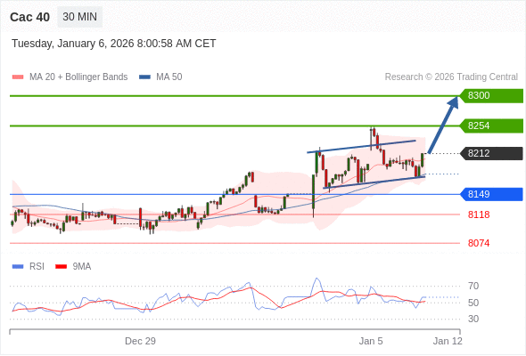 Cac 40 当日内: 在8149之上,看涨。