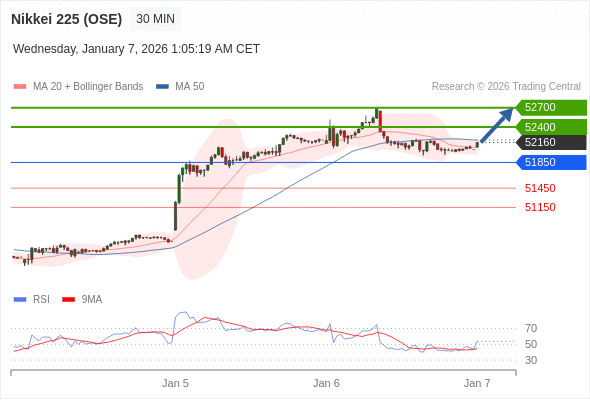 在 51850 之上,看涨,目标价位为 52400 ,然后为 52700 。