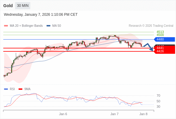 在 4480 之下,看跌,目标价位为 4441 ,然后为 4426 。