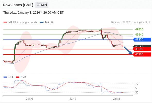 在 49450 之下,看跌,目标价位为 49100 ,然后为 48900 。