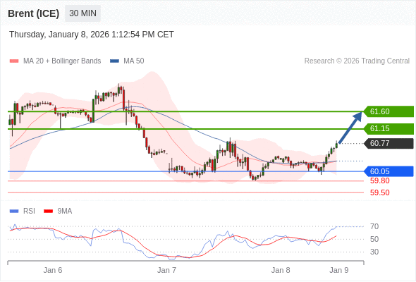 在 60.05 之上,看涨,目标价位为 61.15 ,然后为 61.60 。