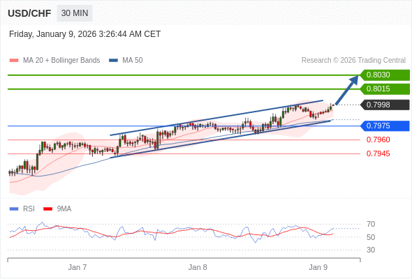 在 0.7975 之上,看涨,目标价位为 0.8015 ,然后为 0.8030 。