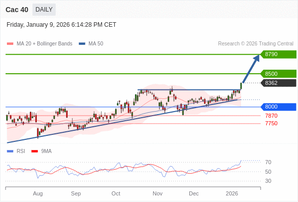 Cac 40 短线: 新一轮上升。