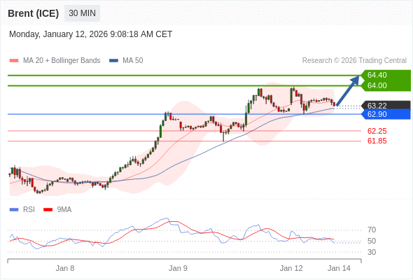 在 62.90 之上,看涨,目标价位为 64.00 ,然后为 64.40 。