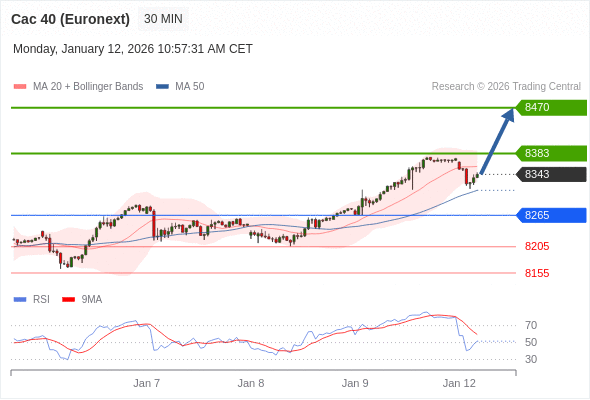 交易策略: 在 8265 之上,看涨,目标价位为 8383 ,然后为 8470 。