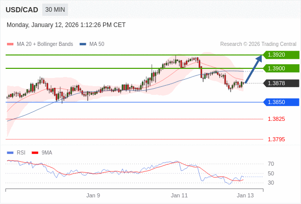 在 1.3850 之上,看涨,目标价位为 1.3900 ,然后为 1.3920 。