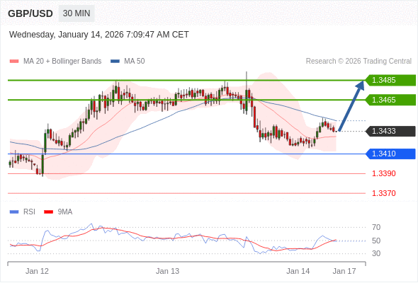在 1.3410 之上,看涨,目标价位为 1.3465 ,然后为 1.3485 。