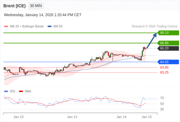在 64.55 之上,看涨,目标价位为 66.85 ,然后为 68.10 。