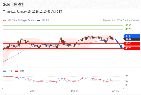 交易策略: 在 4640 之下,看跌,目标价位为 4600 ,然后为 4575 。