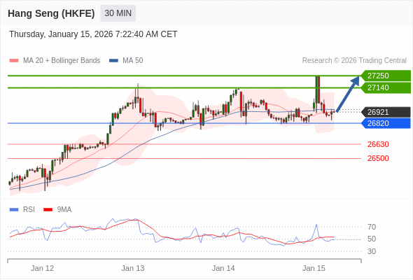 在 26820 之上,看涨,目标价位为 27140 ,然后为 27250 。