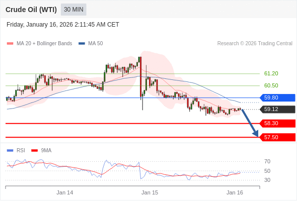 在 59.80 之下,看跌,目标价位为 58.30 ,然后为 57.50 。