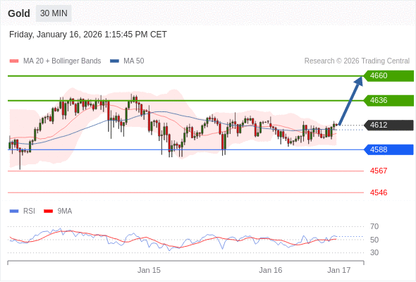 在 4588 之上,看涨,目标价位为 4636 ,然后为 4660 。