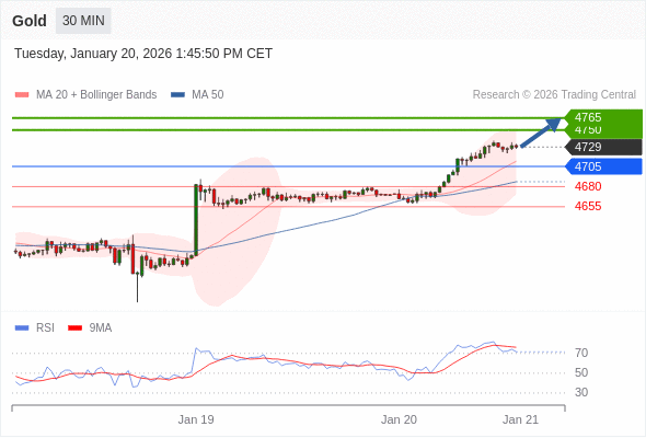 在 4705 之上,看涨,目标价位为 4750 ,然后为 4765 。