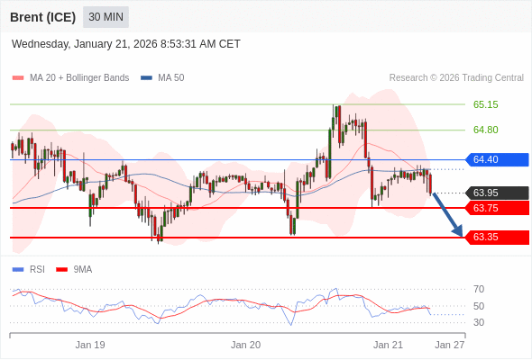 交易策略: 在 64.40 之下,看跌,目标价位为 63.75 ,然后为 63.35 。